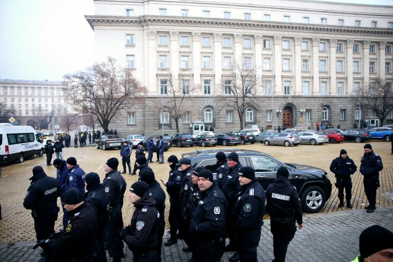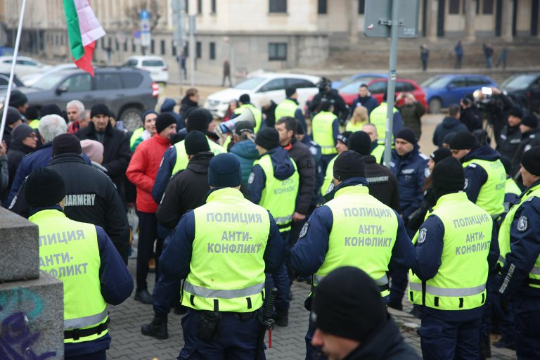 От сутринта на място са множество служители на полицията и жандармерията, които по брой надхвърлят протестиращите.