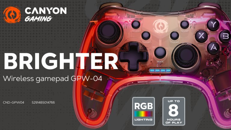 От своя страна Brighter GPW-04 дава повече свобода, защото е с 2,4 GHz безжична връзка със съвместимост с PC, Nintendo Switch, Android, PS3 и PS4. Има и 17 програмируеми бутона, а батерията му осигурява до 8 часа спокойна игра без зареждане.