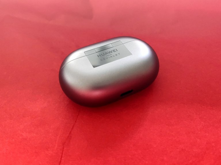 Кутийката им е в същия цвят, само че в матов оттенък и в добре познатата за Huawei заоблена форма. От едната ѝ страна е разположен почти незабележим бутон за активация на слушалките, а в предната част е дискретното лого на компанията, наред с това на Devialet - френския партньор, с чиято помощ е създадена аудио мощта на FreeBuds Pro 2.
