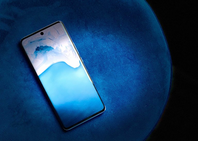 В ръцете ми е смартфон с гръб в перленосиньо (наречено "Звездно синьо") с приятен матов завършек, на който съм фен отдавна.