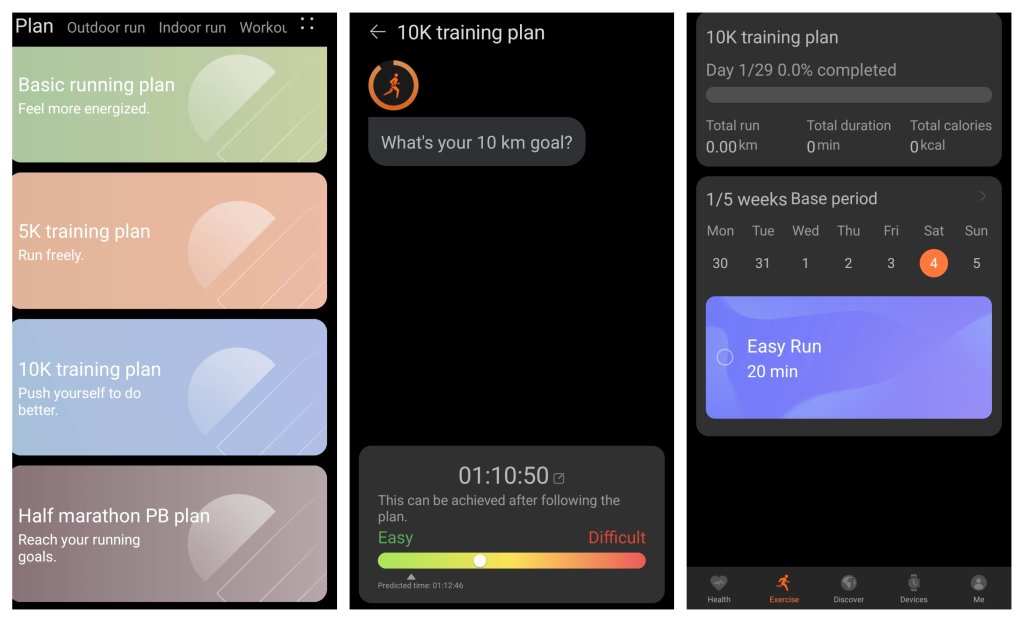 С помощта на приложението Huawei Health часовникът става асистент и личен треньор. Той помага да следя предстоящи маратони, както и да се подготвя за тях чрез интелигентни тренировъчни планове с график и подходящо натоварване спрямо физическата форма и зададената цел.