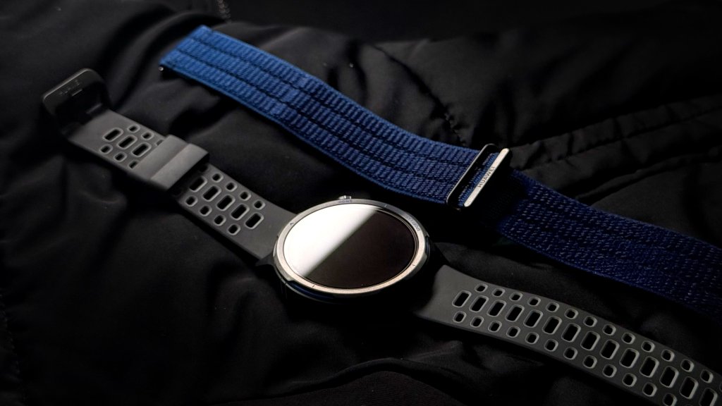 Върви с две каишки в комплекта. Едната е черна от флуороеластомер, а другата е тъкана в син цвят. И двете са ориентирани към спорт и приключения. Тъканата по-специално е направена така, че да позволява по-добра вентилация и минимално задържане на пот и влага.