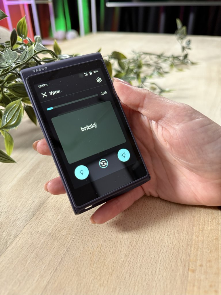 Предлагат ми се различни флашкарти с нови думи, които мога да прехвърля, когато ги запомня. Vasco не се дразни, ако повтарям една и съща дума десет пъти, а ми помага да улуча правилното ударение.