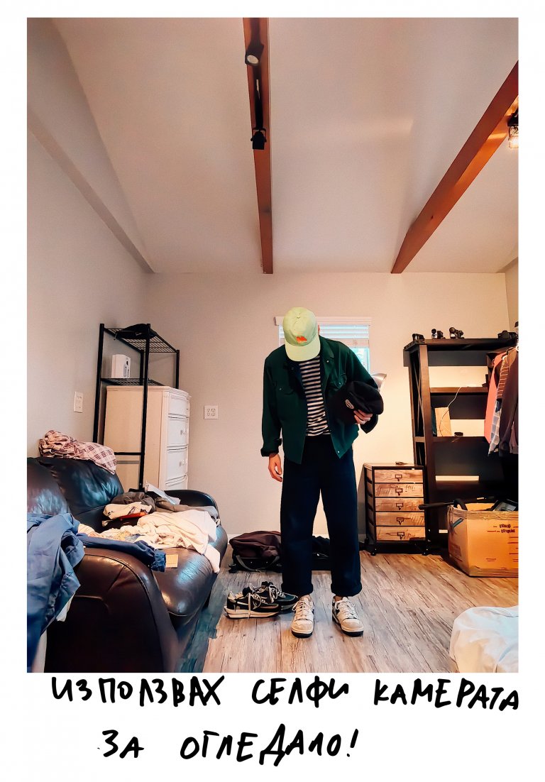 Скейтът, с който се снима, му е даден назаем от сина на семейството, при което е отседнал. Качеството на селфито пък е резултат от full-range автоматичния фокус на сензорите.