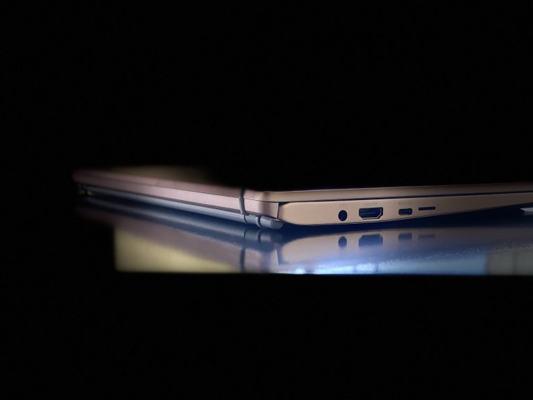 По спецификации дебелината му достига до скромните 16,9 мм, а теглото е само 1,3 кг. Това се усеща много добре, когато го вземете в ръка или подмишница или дойде време да го приберете в раница, пригодена за 15-инчов или 17-инчов лаптоп. Наистина неговата портативност го прави идеален, ако често ви се случва да работите в някое кафене или пък искате до го вземете с вас на екскурзия или път.