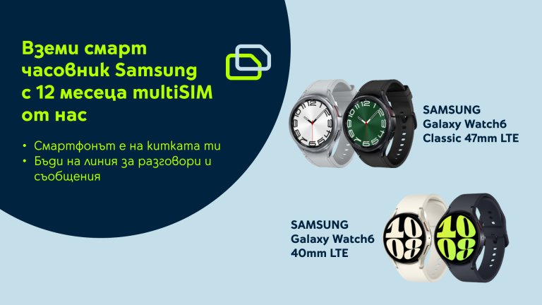 В това приключение помагат Yettel - бранд за активните хора и услуги, които да стимулират именно активността и свободата. Затова в момента Samsung LTE смарт часовниците от сериите Galaxy Watch6, Galaxy Watch6 Classic и Galaxy Watch5 Pro се предлагат с 12 месеца multiSIM без допълнително заплащане.