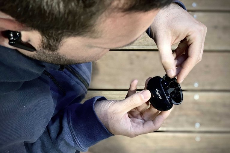 И наистина се оказа, че Huawei изобщо не се шегуват с всичко това. При мен на 100% заредени слушалки батерията падна с едва 40% след 4 часа непрекъснато говорене по телефона и слушане на музика в ANC режим с максимално увеличен звук.