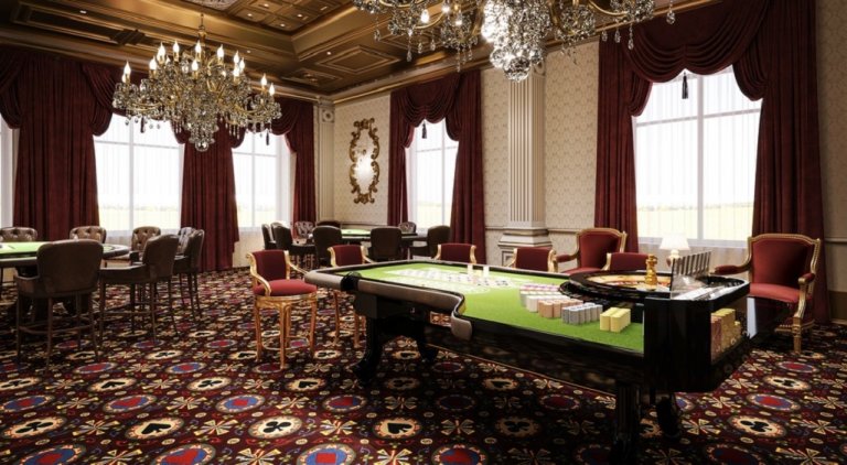 Вътре имението разполага с частна църква, личен театрален салон, казино със слот машини и няколко тематични бара.