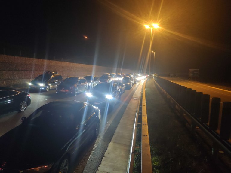 Когато табелата - и намиращите се малко след нея полицаи - дадоха знак, че можеш да продължим към тунелите, радостта беше бурна, но кратка. Малко, след като излязохме от втория, се озовахме в километрично задръстване.