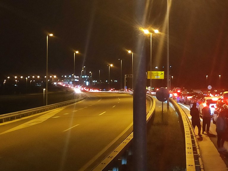 Първата тапа дойде няколкостотин метра след плащане на тол таксата, покрай Димитровград. Десетки коли вече бяха спрели, а изнервени шофьори и пътници сновяха под светлината на фарове и ярката, почти пълна луна. Табела малко по-долу уведомяваше, че не можем да продължим - вероятно, за да не допринасяме за ада преди границата.