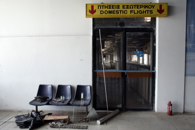 Изоставени самолети, избили от асфалта растения, папки с документи, стари монитори, празни чакални и счупени седалки. Така изглежда днес международното летище "Еленикон", разположено на южното атинско крайбрежие.