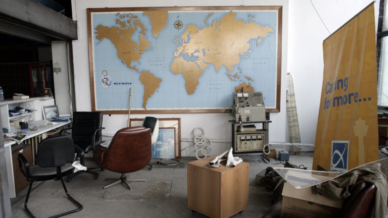 Ако пък излезете извън рушащите се сгради, ще видите малка флотилия от излезли от експлоатация самолети "Боинг", включително внушителните 747-200, 737 и 727, които висят безпризорно на пистите. Всички ръждясващи и изоставени пътнически самолети носят емблемата на Olympic Airways (OA) - превозвачът, който десетки години доминира в небето над Гърция и се е превърнало в синоним на "Еленикон".