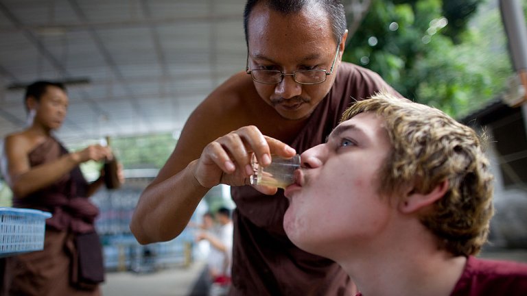 Един от първите чужденци, тръгнали към манастира през 70-е години, е ветеранът от войната между САЩ и Виетнам, носещ името Гордън. Той се ръкоположил за монах и започнал да се грижи за шепата западни пациенти, които изведнъж прииждат, след като чули за радикалната рехабилитация предлагана там.