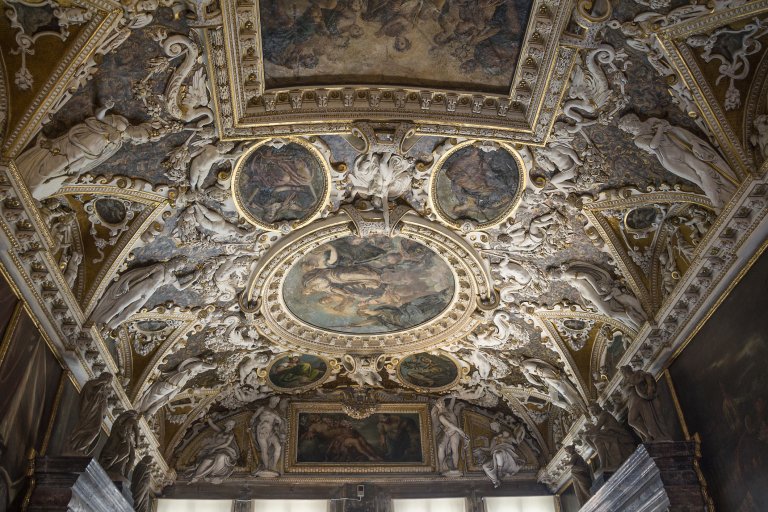 А вътре ме посреща средновековен разкош. Богато украсени зали, рисувани тавани, орнаменти, часовници... Над декорирането са работели най-добрите венециански майстори и са създали истинско богатство за сетивата.