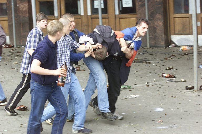 Най-страшно е на Манежния площад. Пияни вандали се бият, разбиват витрини на магазини и заведения и палят коли. Повече от сто души са ранени тежко при сбивания и различни други инциденти, а едно 17-годишно момче, фен на Спартак, никога повече не се прибира у дома.