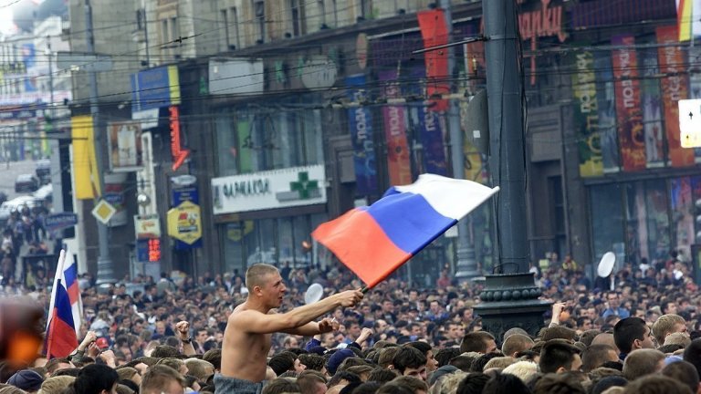 По обяд на площада до хотел "Москва" вече са се събрали над 15 хиляди души. Масовката е абсолютно спонтанна и милицията изобщо не обръща внимание на мерките за обезпечаване на безопасността. Така кръстовището на улиците "Моховая", "Тверская" и "Охотни Ряд" е блокирано едва 10 минути преди началния сигнал.