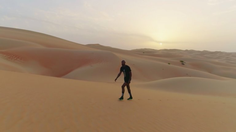 Необятна пустиня. Никола Анелка тича сам-самичък сред океан от пясък.