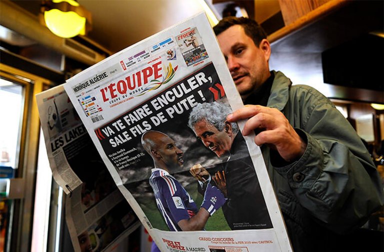 L'Équipe излезе с огромна снимка на Анелка и Доменек и заглавиe: "Майната ти, мръсен кучи син!".