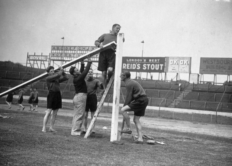 1946 г. Мач между враговете от Оксфорд и Кеймбридж. Студентите са по на няколко бири и предимно се разхождат в различни посоки.