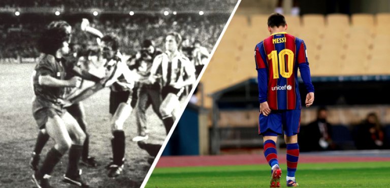 В неделя във финала за Суперкупата между Атлетик и Барселона подобни батални сцени нямаше. 37 години след дон Диего обаче Лионел Меси също изпусна нервите си срещу Билбао и за удар без топка получи първия си червен картон в професионалната си кариера като играч на "блаугранас".