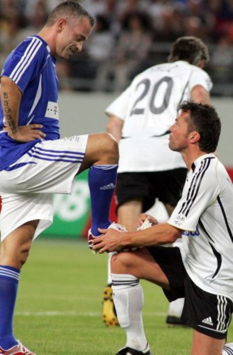 Десетина години преди това Рамацоти бе успял да разтопи дори германските ледени сърца. През 2007-а "адзурите" и Бундестимът отбелязаха четвърт век от финала на Мондиал 1982, а Лотар Матеус символично лъсна обувките на певеца. Да не се връщаме подробно на постиженията на Лотар, но все пак да споменем: "Златна топка", 7 титли от Бундеслигата с Байерн, шампион на Италия с Интер, световен и европейски шампион с националния тим. Ако тръгнем да изброяваме всичко, някъде в края може да отбележим още - бивш национален селекционер на България и ... лъскач на обувките на Ерос Рамацоти.