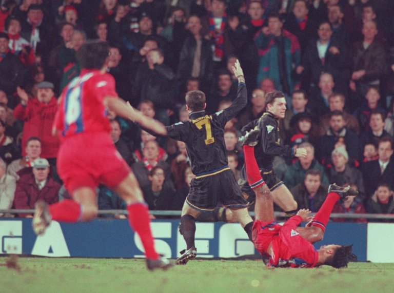 Датата е 25 януари 1995 година, а защитаващият титлата си отбор на Юнайтед гостува в югоизточен Лондон на Кристъл Палас на второ място, на две точки зад лидера Блекбърн, който е победен с 1:0 на "Олд Трафорд" преди три дни с гол на Ерик Кантона.