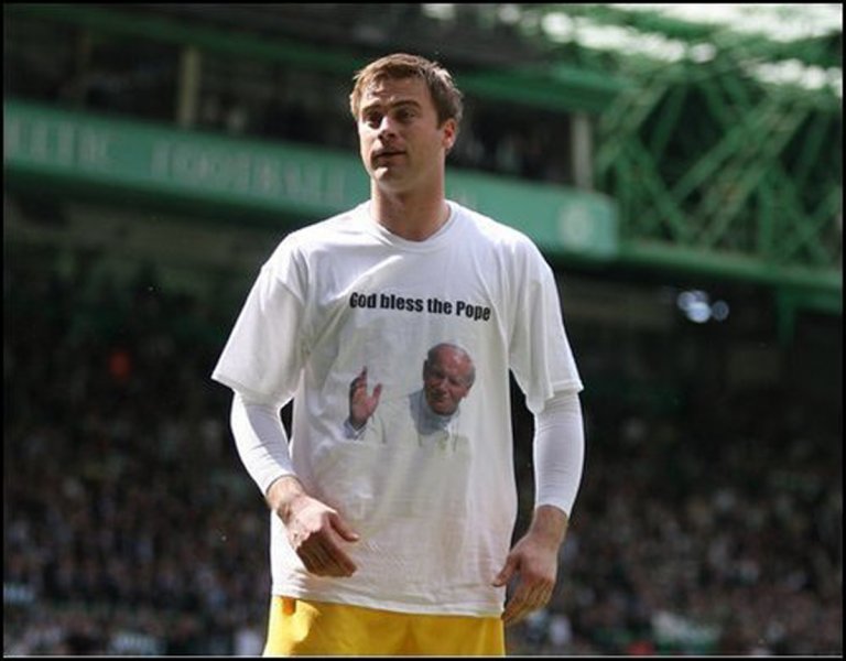 През пролетта на 2008-а "синята" част на Глазгоу отново иска да го линчува. Англиканите негодуват заради тениска с образа на покойния Йоан Павел II и надпис "Бог да благослови папата".