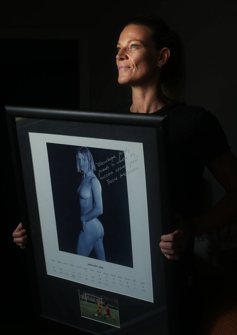 С трепет бившата австралийска футболистка Трейси Макгавърн разгръща календар, отпечатан преди 24 г., който веднага предизвиква искри в очите ѝ.