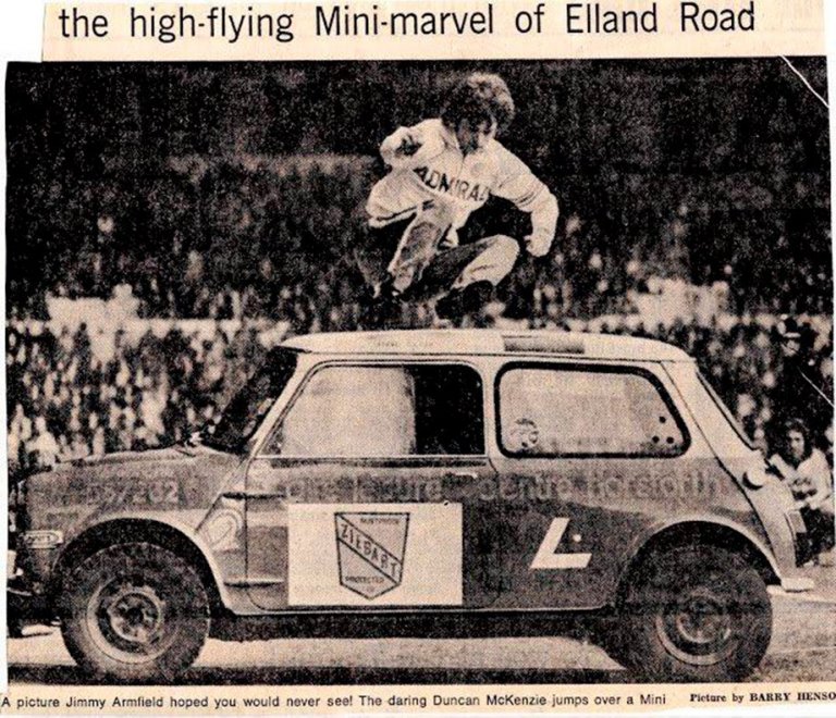 На 3 май 1976 г. "Елънд роуд" е препълнен в очакване на мач срещу Нюкасъл, а Дънкан прелите над още един мини купър на пистата на стадиона - този на съотборника му Пол Рийни.