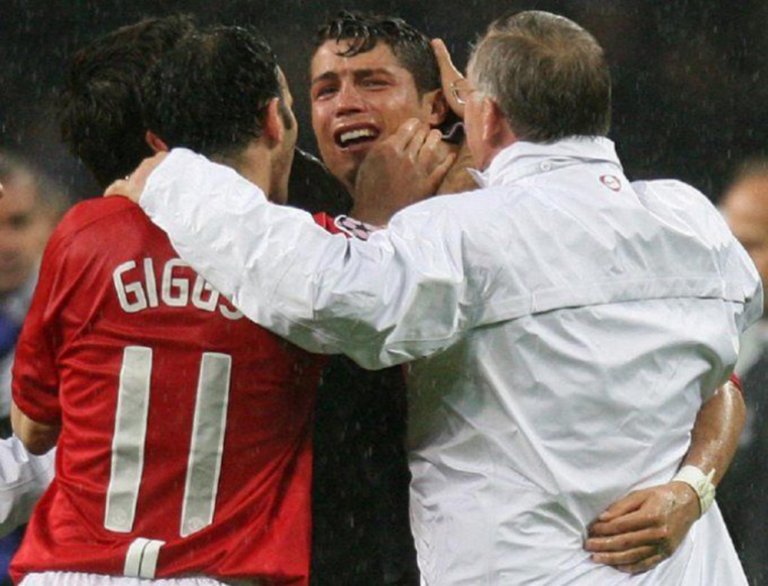 Когато титлата на Юнайтед стана факт, сълзи обляха и лицето на Кристиано Роналдо - автора на първото попадение във финала, който се просна на тревата по очи. Той обаче плачеше от щастие.