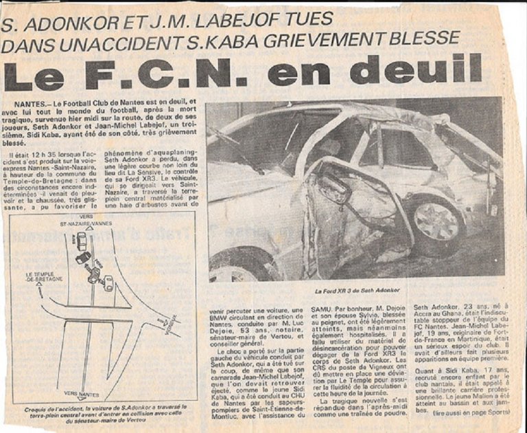 На 18 ноември 1984-та родителите на Лоран Обри канят останалите момчета на обяд. Приятелите започват да се събират още от рано сутринта и поемат към малкото градче в полите на Нант Сен Назер по магистралата. Пътят обаче е мокър заради проливния дъжд. В 12:35 ч. на обяд Сет Адонкор губи контрол над автомобила - Ford XR3 Explorer, преминава през зелената площ, разделяща двете ленти и се озовава в лентата за насрещно движение.