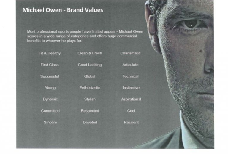 Всичките 21 прилагателни целят да покажат, че Оуен "се вписва в най-разнообразни категории и предлага огромни комерсиални предимства за клуба, за който играе".