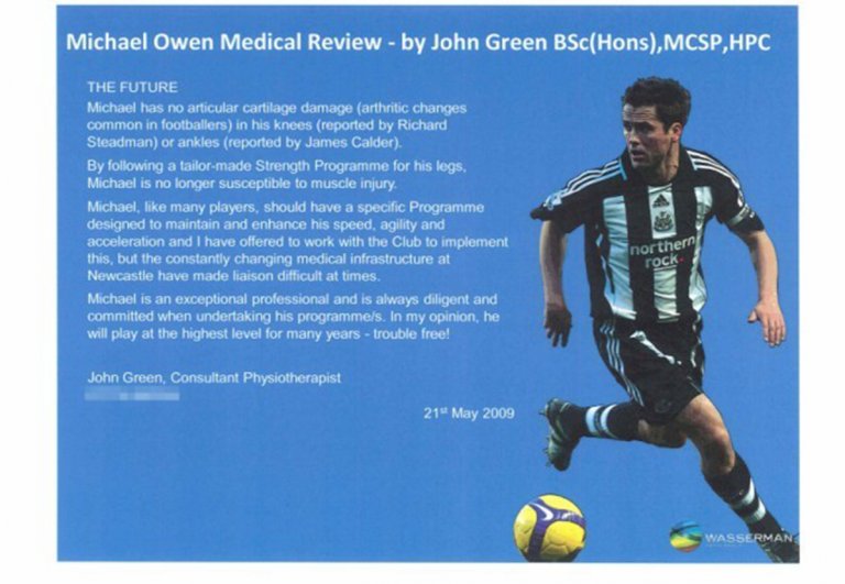 В опит да предскаже бъдещето на Оуен, Грийн, сред които клиенти са актьорите Кит Харингтън и Миранда Харт, пише три трезви параграфа, за да обясни на интересуващите се от него как нападателят може да избегне травмите, ако следва определена тренировъчна програма.
