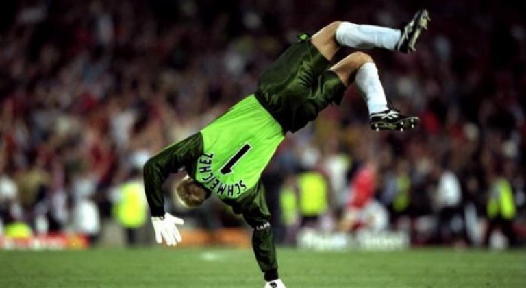 Връщайки се към финала в Шампионската лига, един кадър се е запечатал в съзнанието на милиони фенове - циганското колело на Петер Шмайхел след победното попадение на Оле Гунар Солскяер.