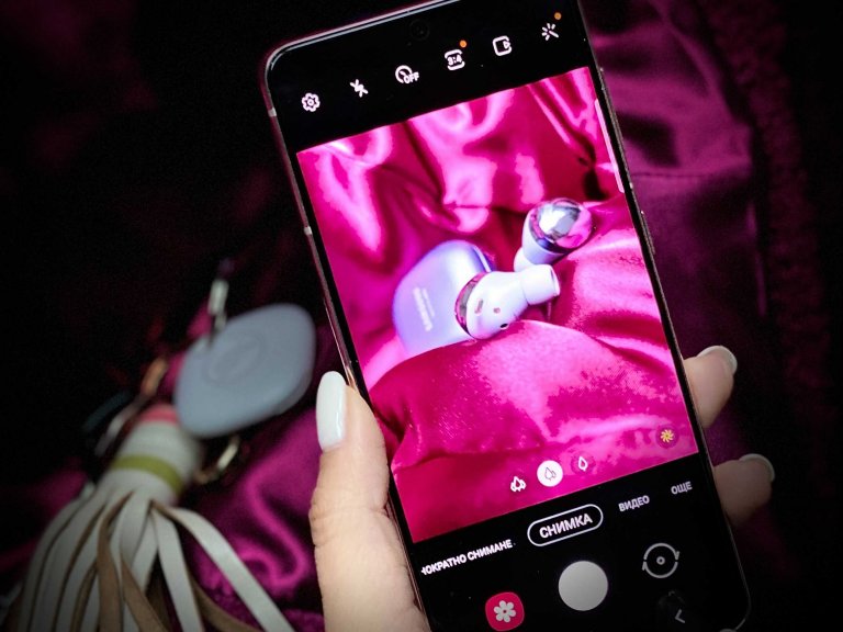 Дисплеят от 6,2 инча е с технологията Dynamic AMOLED и опресняване от 120Hz. Заедно с това смартфонът поддържа и опресняване спрямо визуалното съдържание, което щади както зрението, така и батерията. Неоспорим плюс е, че под яркото априлско слънце разглеждам снимките, които съм направила на боровата гора преди "Траянови врата", без да губя представа колко ярки и колоритни са.