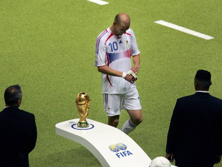 В последния си мач Зинедин Зидан минава край световната купа, след като е ударил с глава Марко Матераци в продълженията на финала на 9 юли 2006 г. Тогава Италия спечели срещу Франция с дузпи.