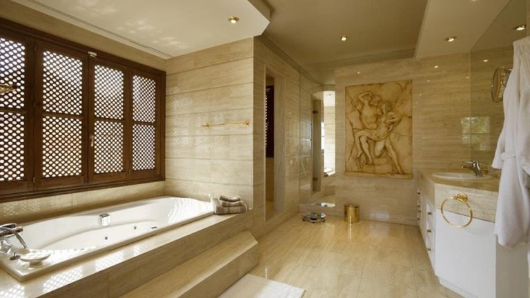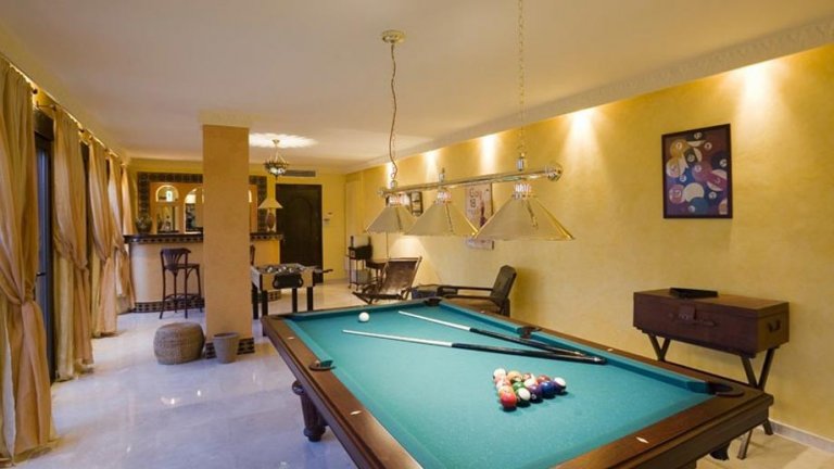 Къщата е оборудвана с фитнес, зала за билярд, мини кино стая и дори турска баня, която е предназначена за релакс след тежка тренировка на корта или в залата.