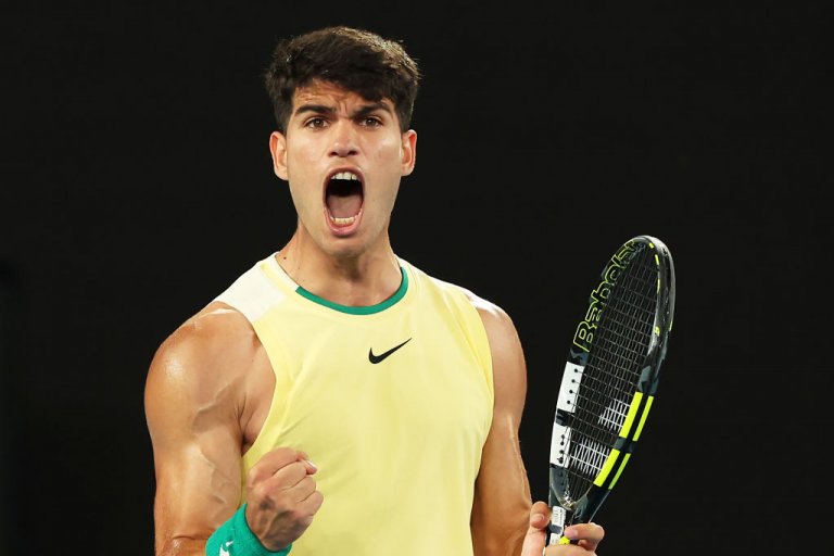 Вторият в ранглистата Карлос Алкарас бе един от малкото в мъжката схема, които излязоха на корта с потник.