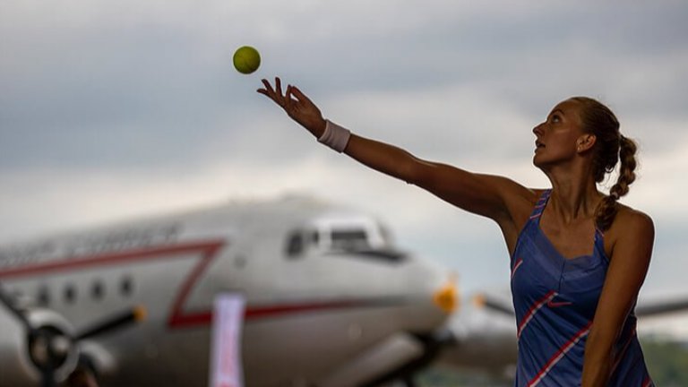 От едната страна на корта умишлено бе оставена отворена едната врата на хангара, а отвън бе паркиран самолет, който служеше за фон на играчите. Идеята се оказа брилянтна и снимките от турнира изглеждат феноменално.