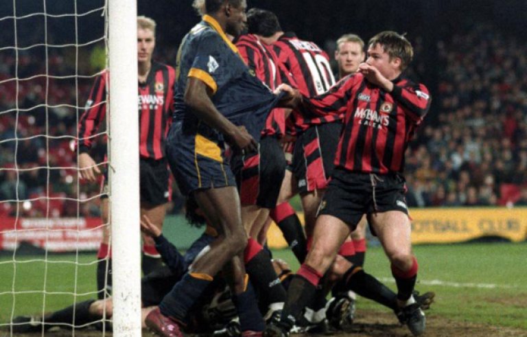 Мачовете на "Лудата банда" Уимбълдън във Висшата лига често се превръщаха във война. Незнайно защо Греъм льо Со от Блекбърн вярва, че е в категорията на здравеняка Джон Фашаню.