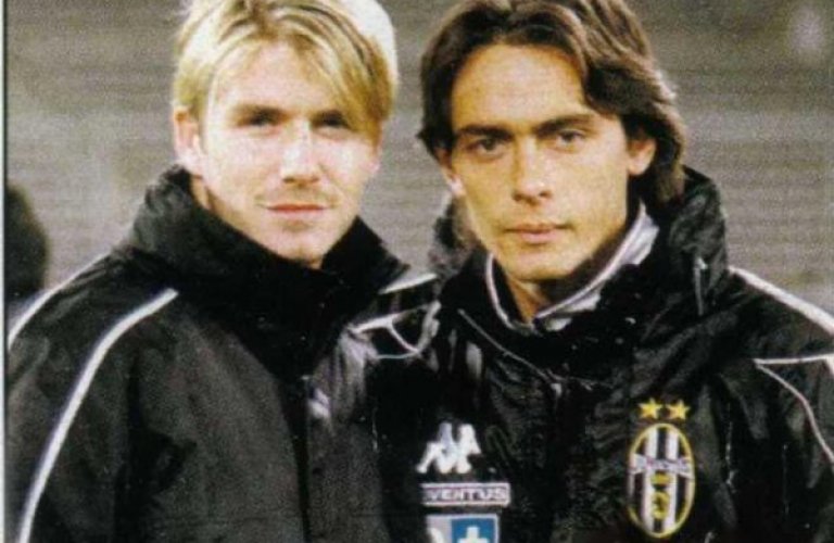 Дейвид Бекъм и Филипо Индзаги преди полуфинала в Шампионската лига през сезон 1998/99.
