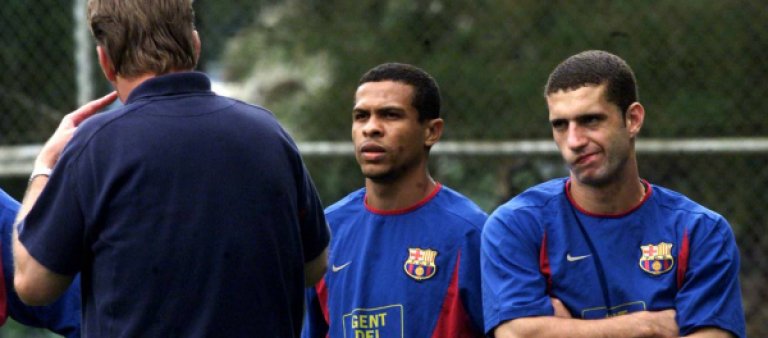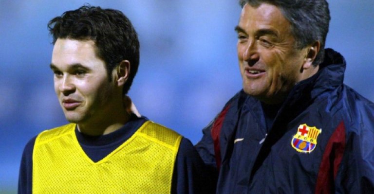 Сезон 2002/03 беше един от най-лошите в новата история на Барселона, но дебют за каталунците ннаправи Андрес Иниеста. На снимката испанската легенда е с покойния вече Радомир Антич.