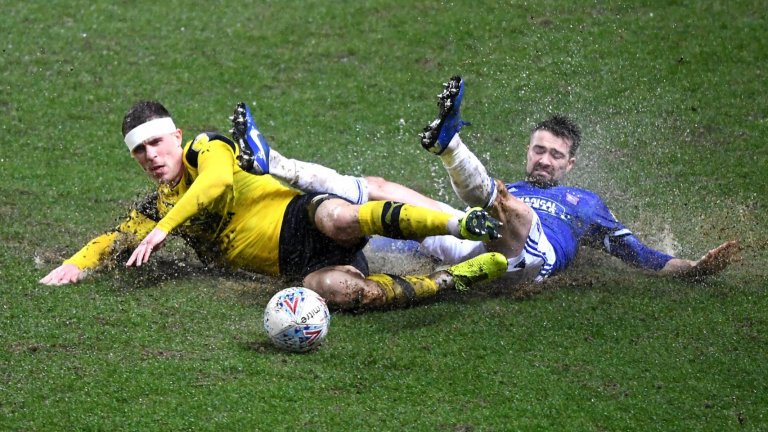 Срещата от английската Първа лига при безмилостно дъждовни и кални условия завърши без голове, но предложи ефектни единоборства като това.