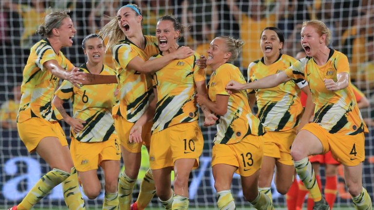 Женският отбор на Австралия се наслаждава на момент на заразителна колективна радост. Тимът тъкмо е отбелязал във вратата на Китай в олимпийска квалификация.