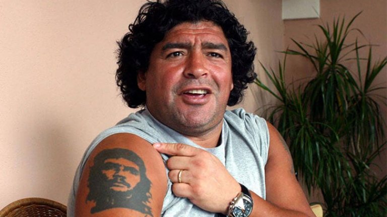 "Нося облика му като татуировка на ръката си. Това е форма на изкуство - казваше Марадона. - Това ми хоби започна в Италия, не в Аржентина. В Аржентина мислех за Че, както много от сънародниците ми: като за убиец, за терорист, за революционер, който залагал бомби в училищата. На това ме учеха там.