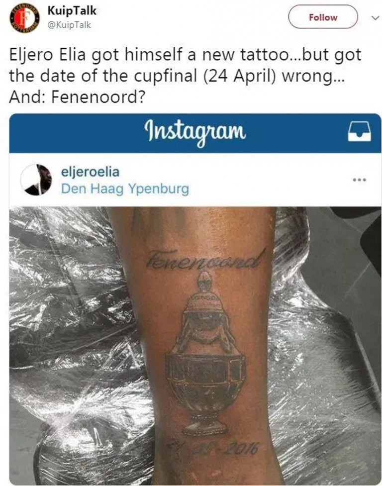 Немалко от тях показват лошия си вкус с татуировките, които си правят. Ще ви покажем някои от най-абсурдните, въпреки че подобна класация е необятна.