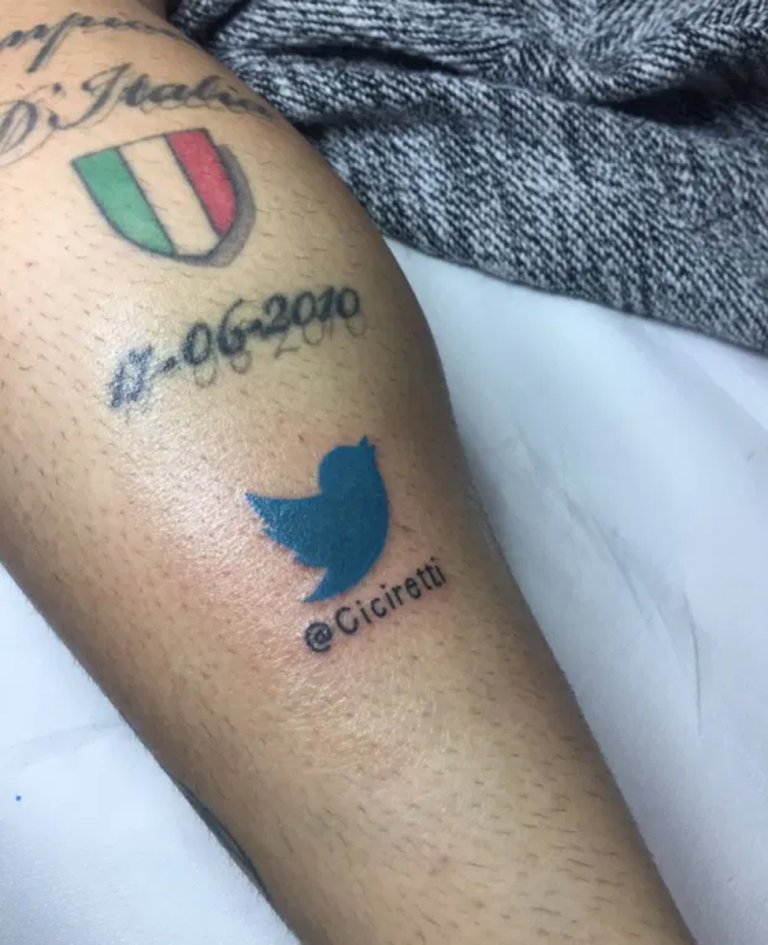 Футболистът на Асколи Амати Чичирети си е татуирал... социална мрежа. Невероятно, но той има едва 2374 последователи в нея, туитвал е само 31 пъти, а последният му пост е отпреди почти две години.