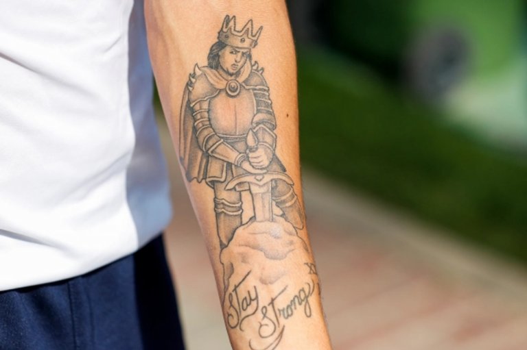 Това не са йероглифи, а надпис на езика на елфите от "Властелинът на пръстените". Голмайсторът на Манчестър Сити трябва да е доста голям фен на филма, как мислите? Не, не. Той твърди, че дори не е гледал филма.
