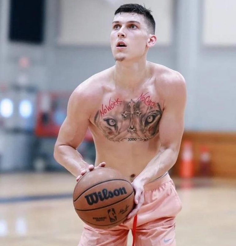 Баскетболистът си бе татуирал устните на приятелката си Трина. След като се разделиха обаче реши да ги покрие с нов татус.