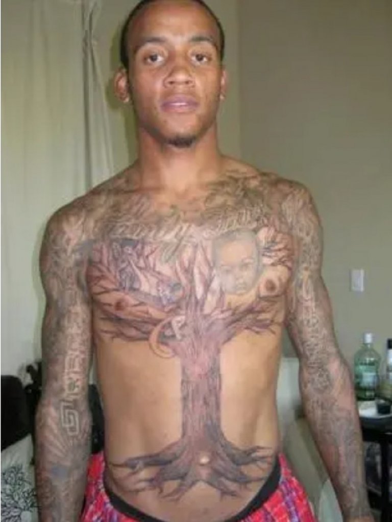 На гърлото му пише "Naymin" - името на сина му. Но го подиграват, че надписът гласи "Gay Man".